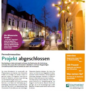 Die Stadtwerke Grevesmühlen GmbH haben die Arbeiten an der Fernwärmeversorgung der Innenstadt abgeschlossen. Das aktuelle Kundenheft informiert über das gesamte Bauvorhaben.